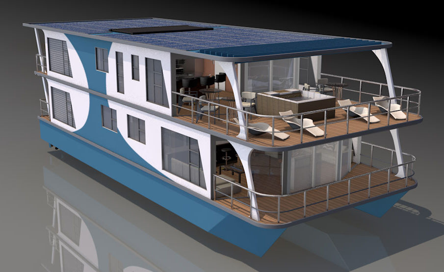 Here is a great opportunity for tourism in developing countries and housing for the up market European market. What makes these houseboats so unique, is the ease in which their interiors can be customized to serve customer needs.